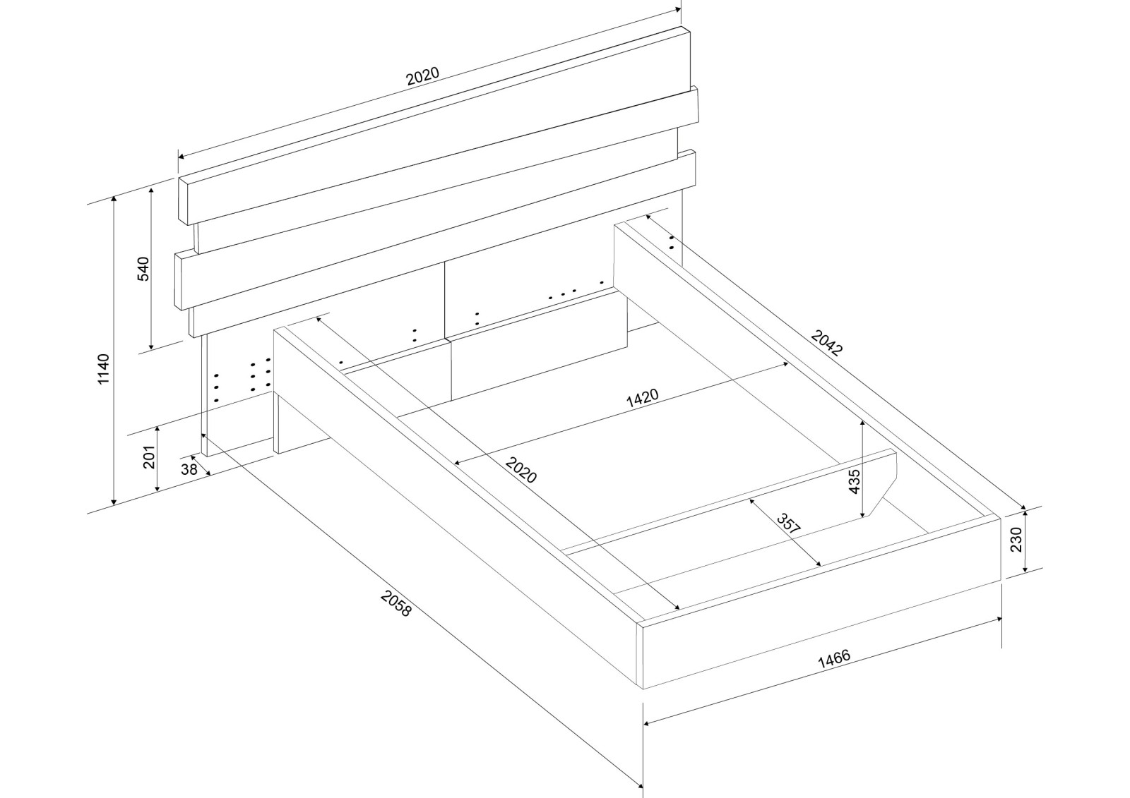 - Slatted headboard with integrated LED lights.