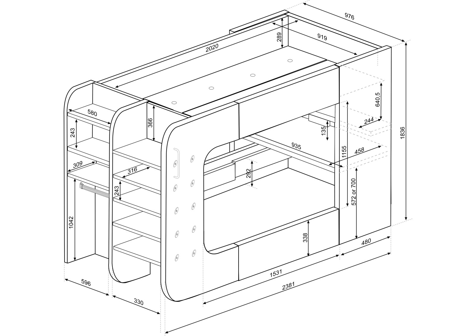 Maximum thickness for the mattress of the upper bed must be 16cm.
