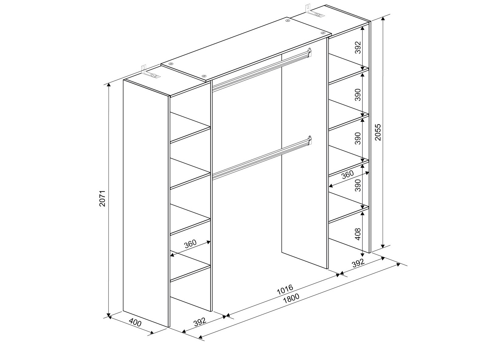 Height: 207cm. Length: 180cm. Depth: 40cm.